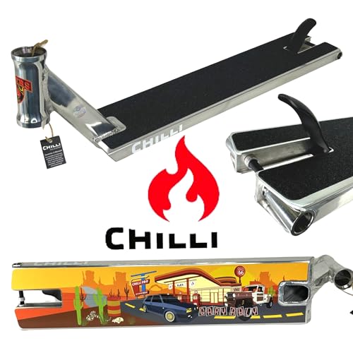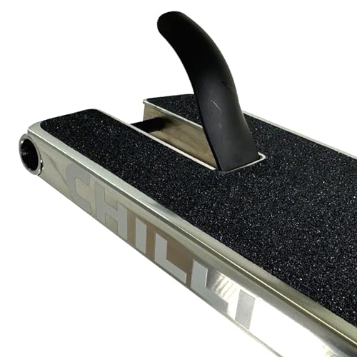 Fragen und Antworten zu Chilli PRO Scooter Sign,Gary Ably Street 56cm x 13cm Stunt-Scooter Park I Hybrid I Deck I Trick I Tret I Roller I Zubehör I Ersatz I mit Griptape poliert Silber