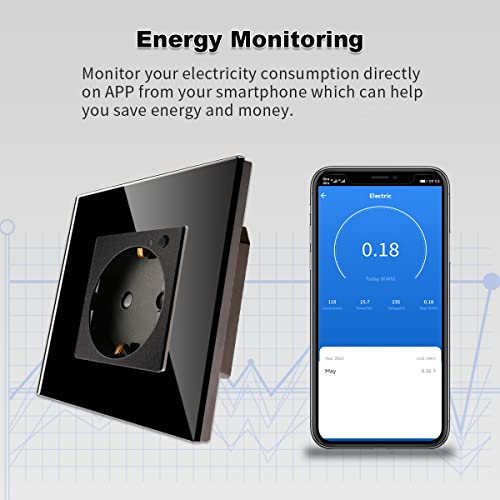 Produktbeschreibung: CNBINGO WLAN Schuko Steckdose unterputz mit Strommessung, 16 Amp Glas Smart Steckdose Arbeit mit Alexa(Echo, Echo Dot), Google Assistant, Nur 2.4 GHz WiFi, 1 Fach, Schwarz, 1er Pack