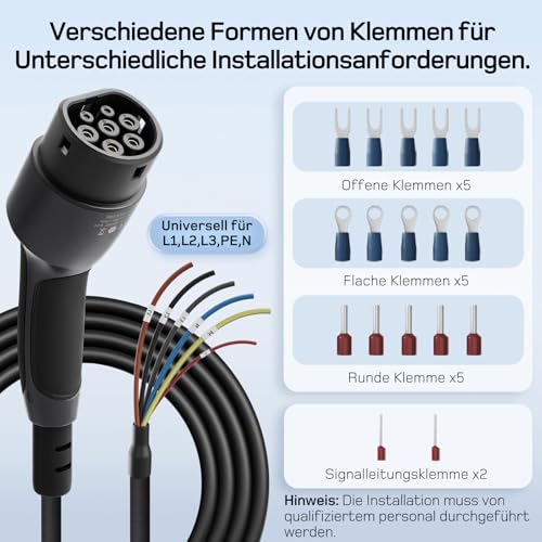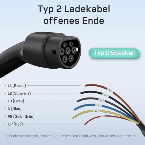 Fragen und Antworten zu dé Typ 2 Ladekabel offenes Ende 11kW [3-Phasen| 7,5m| 16A] Freiem Kabelende für Wallbox/Ladestation Ersatzkabel