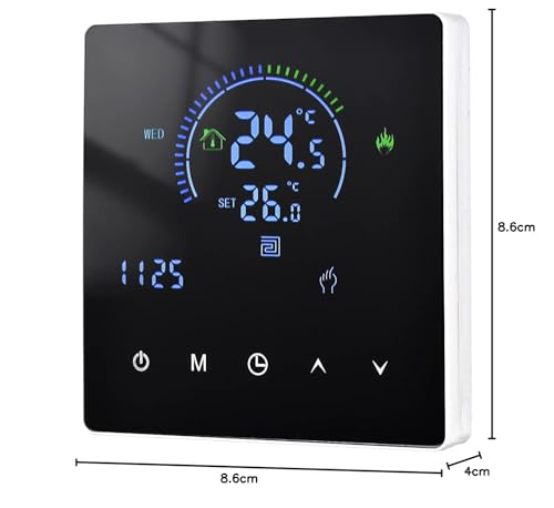 Der Thermostat verfügt über eine Touch-Oberfläche und einen gut lesbaren LCD-Bildschirm mit Hintergrundbeleuchtung. Die Touchscreen-Tasten sind aus kratzfestem ABS und gehärtetem Material gefertigt. Er unterstützt außerdem eine Frostschutzfunktion und eine Kindersicherung. Zusätzlich kannst du die Temperaturbegrenzung einstellen und zwischen Celsius und Fahrenheit umwandeln.