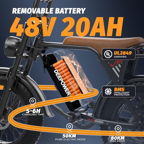 Fragen und Antworten zu DEEPOWER Elektrofahrrad, 20“ E-Bike, 48V 20Ah Abnehmbarem Akku, 250W Motor, Reichweite 80km(PAS), Duale Lichter, Ebike für Erwachsene Herren