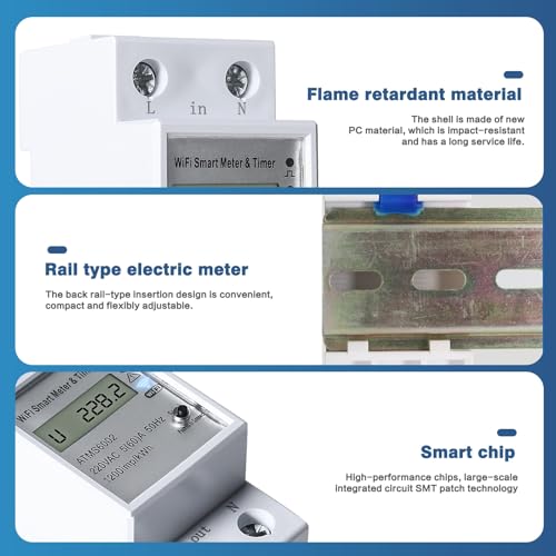 Mit der dazugehörigen mobilen App kannst du nicht nur den aktuellen Stromverbrauch in Echtzeit ablesen, sondern auch Verbrauchstrends analysieren und Geräte fernsteuern. Eine weitere nützliche Funktion ist die Timing-Funktion, mit der du das automatische Ein- und Ausschalten von Haushaltsgeräten programmieren kannst. Das Gehäuse des Stromzählers besteht aus flammhemmendem PC-Material, was für zusätzliche Sicherheit sorgt. Die Installation erfolgt unkompliziert auf einer Standard-DIN35-mm-Schiene, ohne dass Schrauben erforderlich sind.
