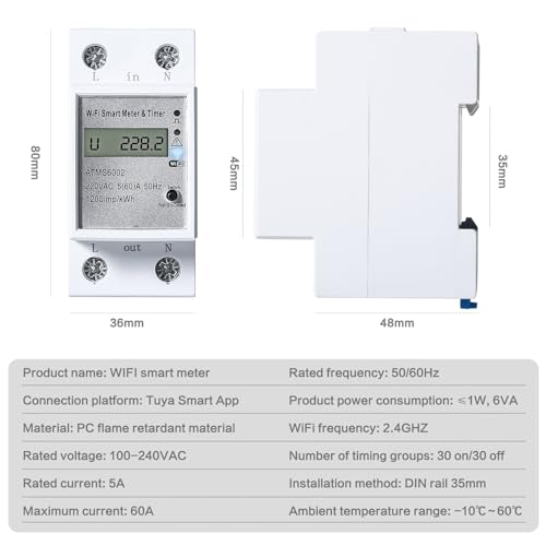 Fragen und Antworten zu DEWIN Einphasiger Stromzähler,2P TUYA WiFi Smart Meter Einphasiger DIN Schienen Energiezähler Fernsteuerung Sprach APP Steuerung AC 230V