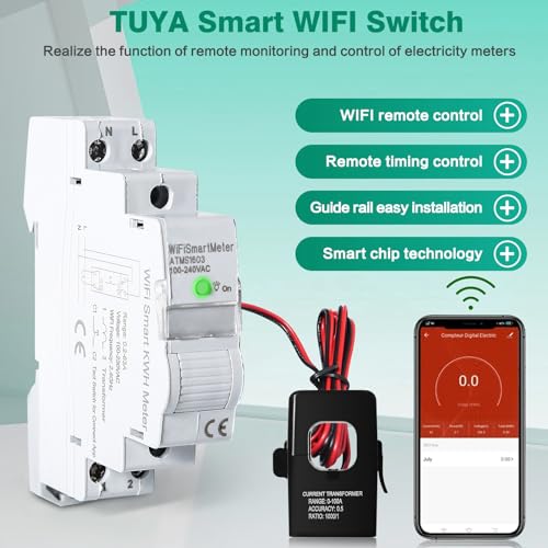 Produktbeschreibung: DEWIN Stromzähler WLAN Hutschiene, ATMS1603 Einphasiger WiFi Intelligenter Energiezähler Tuya Smart WiFi Schalter DIN Schiene Präzise Messung Voltmeter Amperemeters AC 230V