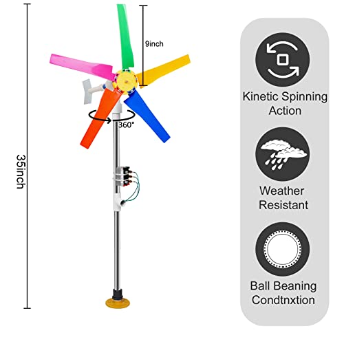 Produktbeschreibung: DIY Kleine Windkraftanlage Generator Kit und Lichtleiste für Hinterhofdekoration Kostenloser Energiegenerator Garten Spinner Windmühle Dekor 45,7 cm Durchmesser