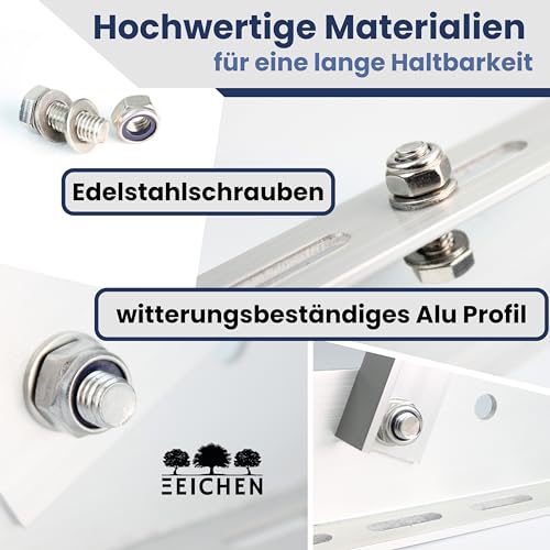 - Stabile Befestigung dank 3mm Aluminiumprofilen und Edelstahlschrauben.