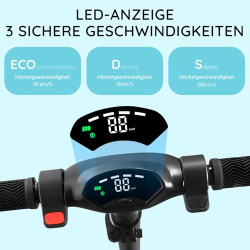 Fragen und Antworten zu E-RIDES E Scooter Kinder,LED-Anzeige,Faltbarer und Höhenverstellbar Elektroroller für Kinder von 8-16 Jahren,Max Reichweite 20KM,Max 20KM/H,Elektroscooter Geschenk für Kinder und Jugendliche Keine ABE