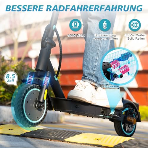 Fragen und Antworten zu E-Scooter, Elektroroller mit Straßenzulassung (ABE), Max.20 KM/H, 8,5-Zoll Scooter, 400W Motor, 7,8Ah Batterie,25KM, Komfortable Stoßdämpfung, APP-Verbindung, Faltbar, LED-Display