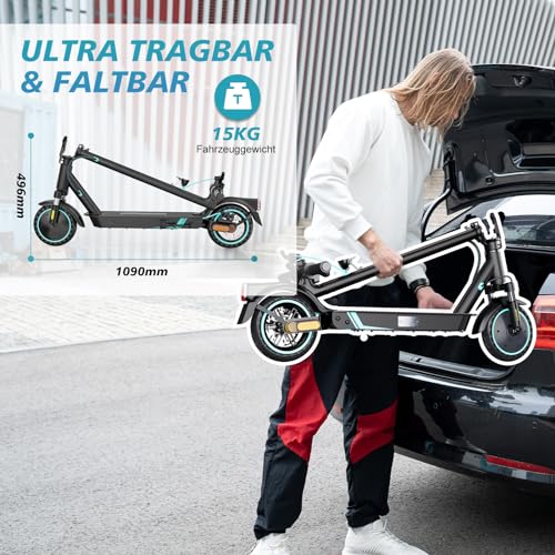 Ein weiteres wichtiges Feature ist der sichere Start: Der Motor wird erst ab einer Geschwindigkeit von 5 km/h aktiviert, um ein versehentliches Anfahren zu verhindern. Mit einem Gewicht von nur 15 kg und dem 3-Sekunden-Faltmechanismus ist der E-Scooter besonders benutzerfreundlich und lässt sich problemlos in Bus, Bahn oder Auto mitnehmen.