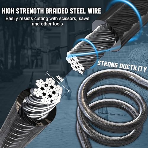 - DICKERES KABEL: Das neu verbesserte Rollerkabelschloss ist aus hochfestem geflochtenem Stahldraht hergestellt.