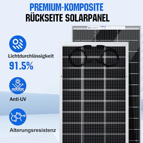 Produktbeschreibung: ECO-WORTHY 195W Bifacial Solarpanel 18V, Monokristallin Solarmodul für 12V Batterien, Photovoltaik, Solarpanel 12V Ideal für Wohnmobil, Balkonanlage, Gartenhäuse, Boot