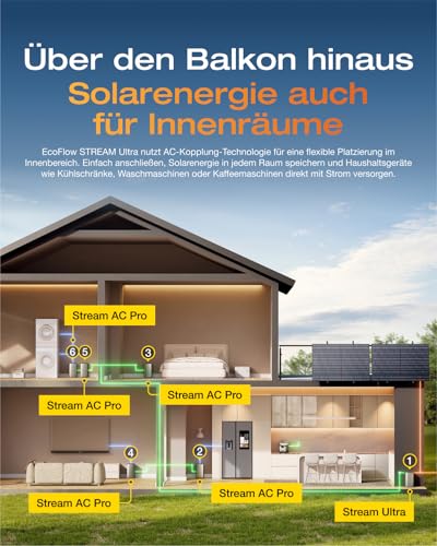 Fragen und Antworten zu ECOFLOW STREAM Ultra Balkonkraftwerk mit Speicher 1600W, 1,92kWh Speicher für Balkonkraftwerk, 4x 400W Solarpanel, 2300W Dual AC-Anschlüsse, erweiterbar auf 21 kWh, 6000 Ladezyklen, KI, Plug&Play