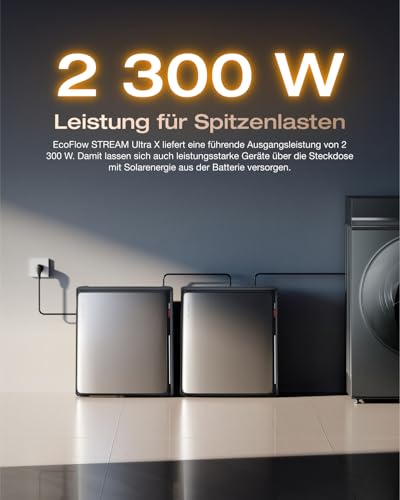 Fragen und Antworten zu ECOFLOW STREAM Ultra X 3,84kWh, 0%VAT Balkonkraftwerk mit Speicher 4 MPPT 2800W Solareingang 2300W Dual AC-Anschlüsse, All-in-One Stromspeicher mit Wechselrichter 23kWh Kapazität 6000 Zyklen,Plug&Play