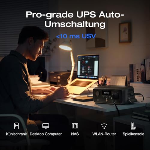Mit der ECOFLOW River 3 hast du die Freiheit, deine Geräte überall mit Strom zu versorgen. Ob du beim Camping deine Kühlbox betreibst, im Van deinen Laptop lädst oder zu Hause bei einem Stromausfall wichtige Geräte am Laufen hältst – die River 3 ist dein zuverlässiger Begleiter. Die kompakte Größe und das geringe Gewicht machen den Transport zum Kinderspiel. Dank der schnellen Ladezeit bist du schnell wieder einsatzbereit. Die USV-Funktion schützt deine empfindlichen Geräte vor Datenverlust und Schäden.