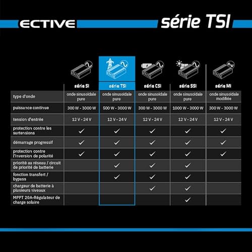 Im Vergleich zu anderen Spannungswandlern zeichnet sich der ECTIVE TSI 30 durch seine reine Sinuswelle aus, die eine höhere Kompatibilität mit empfindlichen Geräten gewährleistet. Viele günstigere Wechselrichter verwenden eine modifizierte Sinuswelle, die zu Problemen führen kann. Auch die hohe kurzzeitige Leistungsabgabe von bis zu 6000W ist ein Vorteil gegenüber vielen Konkurrenzprodukten. Die integrierte NVS- und USV-Funktion ist ebenfalls nicht bei allen WechselrichternStandard.