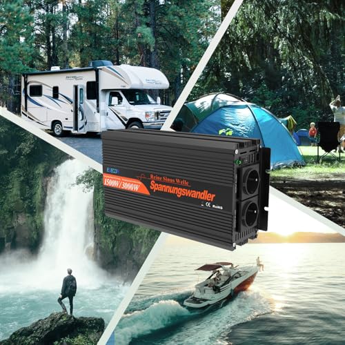 Fragen und Antworten zu EDECOA 1500W Reiner Sinus Wechselrichter 12V auf 230V – Universal Batterie-kompatibel Lithium/AGM/Gel – 90% Effizienz – Fernbedienung & USB – 6-in-1 Schutz für Wohnmobile Camping 3000W Spitzenleistung