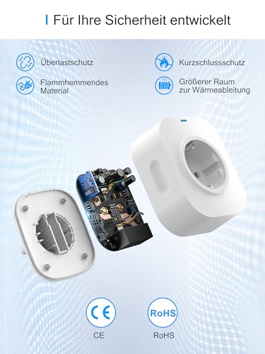 Ein weiteres Highlight ist die integrierte Strommessung. Mit der Echtzeit-Messung behältst du deinen aktuellen Energieverbrauch stets im Blick. Die App schätzt sogar deine Stromkosten, sodass du Energiefresser schnell identifizieren und gezielt Maßnahmen zum Energiesparen ergreifen kannst. Die hohe Leistung von bis zu 3680W / 16A und das sichere Gehäuse mit verbesserter Wärmeableitung sorgen für einen zuverlässigen und sicheren Betrieb, auch bei Geräten mit höherem Stromverbrauch.