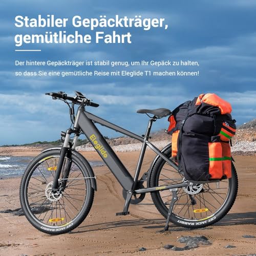 Produktbeschreibung: Eleglide E-Bike, T1 Elektrofahrrad 27.5“ Trekking E-Cityrad mit 13Ah Akku, 100KM Lang Range, 250W Motor, 7 Gäng E-Mountainbike für Damen und Herren, Doppelscheibenbremsen