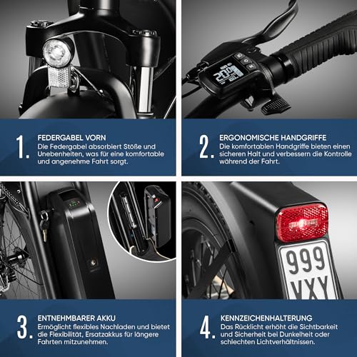 Ein weiteres Highlight ist der herausnehmbare Akku mit Fast-Charge-Ladegerät. Das Aufladen wird so zum Kinderspiel: Du nimmst den Akku einfach heraus, schließt ihn an das mitgelieferte Ladegerät an und bist schnell wieder bereit für die nächste Fahrt. Der Akku bietet dir eine beeindruckende Reichweite und eine zuverlässige Energiequelle für deine täglichen Erledigungen.