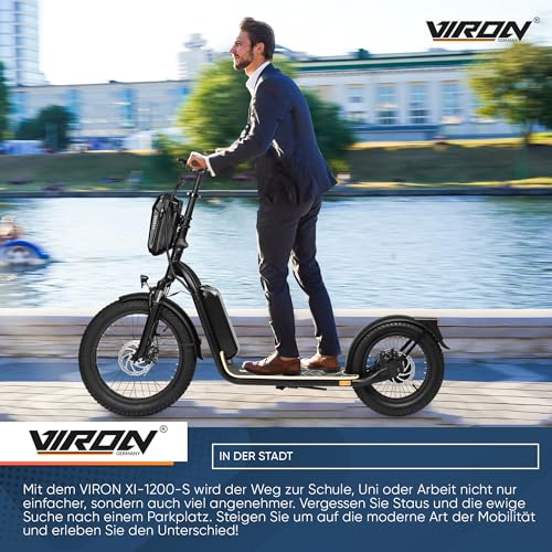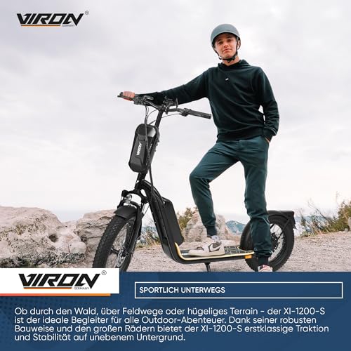 Im Vergleich zu anderen E-Scootern zeichnet sich der VIRON XI-1200-S besonders durch seine Kombination aus Straßenzulassung, herausnehmbarem Akku und robuster Bauweise aus. Während viele andere Modelle entweder keine Straßenzulassung besitzen oder einen fest verbauten Akku haben, bietet der VIRON XI-1200-S die Flexibilität eines herausnehmbaren Akkus und die Sicherheit einer legalen Nutzung im Straßenverkehr. Die Federgabel und die großen Räder sorgen zudem für ein komfortableres Fahrerlebnis, insbesondere auf unebenen Untergründen.