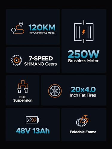 Dank der Federgabel und der 20 x 4.0 Zoll breiten Reifen ist das E-Bike für verschiedene Gelände geeignet. Ob Asphalt, Kies, Sand oder Schnee – du kannst dich auf einen stabilen und komfortablen Fahrstil verlassen. Für deine Sicherheit sorgen die mechanischen Scheibenbremsen an Vorder- und Hinterachse sowie ein LCD-Display, ein heller Scheinwerfer und ein Rücklicht. Das 7-Gang-System ermöglicht dir, die ideale Übersetzung für deine Fahrbedingungen zu wählen. Der Rahmen besteht aus einer leichten und robusten Aluminiumlegierung 6061.