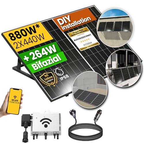Fragen und Antworten zu EPP.Solar® 880W Balkonkraftwerk mit Halterung Balkonkraftwerk, Bifaziale Solarpanel, Balkonkraftwerk 800W komplett Steckdose, Wechselrichter 800W mit Wifi, Photovoltaik komplettanlage, 3m Kabel