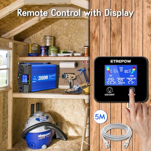 Fragen und Antworten zu ETREPOW 2000W/4000W 12V Auf 230V Reiner Sinus Wechselrichter mit Fernbedienung, 2 EU Steckdosen, 2 USB+Tycp-C Anschlüssen, geeignet für Haushaltsgeräte, Wohnmobile, Camping Spannungswandler