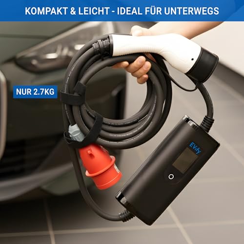 Produktbeschreibung: EVify Mobile Wallbox 11kW Ladegerät Typ 2 – Ladekabel CEE 16a auf Typ 2 3-Phasig 5M, Ladegerät Ladeleistung einstellbar, Mobile Ladestation, Ladekabel E Auto Starkstrom, EV Charger 11kW mit Tasche