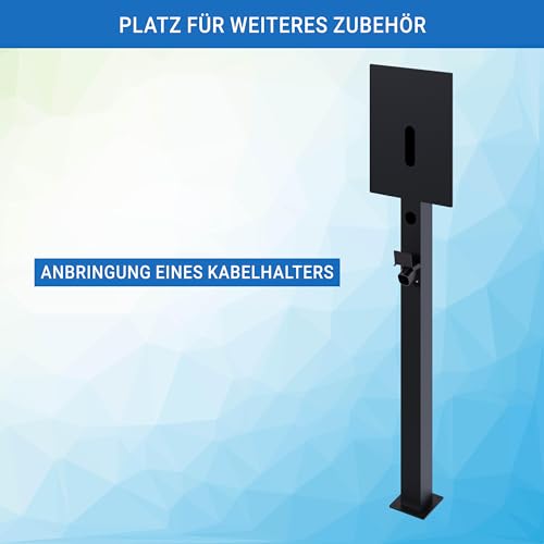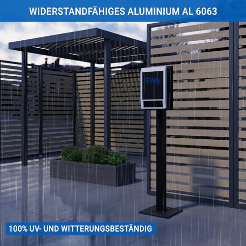 Produktbeschreibung: EVify Wallbox Standfuß • Wetterfeste Standsäule, Steele aus Aluminium mit Pulverbeschichtung • Universeller Wallbox Ständer für Elektroauto Ladestationen