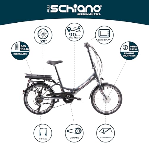 Produktbeschreibung: F.lli Schiano E-Star, E Bike Klappbar 20 Zoll, 36V 10.4Ah Abnehmbarer Akku, Motor 250W 40Nm, Klapprad Ebike für Herren/Damen, Anthrazit