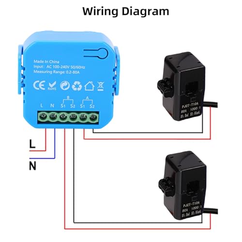 - Mitgelieferte 2 x 80-A-Stromwandlerklemmen mit 1 m langen Kabeln für eine einfache Installation.