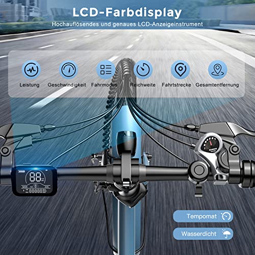 - Die tatsächliche Reichweite kann je nach Fahrergewicht, Streckenbeschaffenheit und gewählter Unterstützungsstufe variieren.