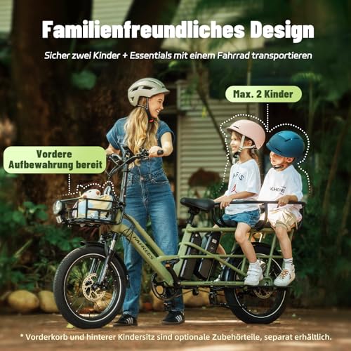 - Das E-Bike ist speziell für den sicheren Transport von bis zu zwei Kindern konzipiert.
