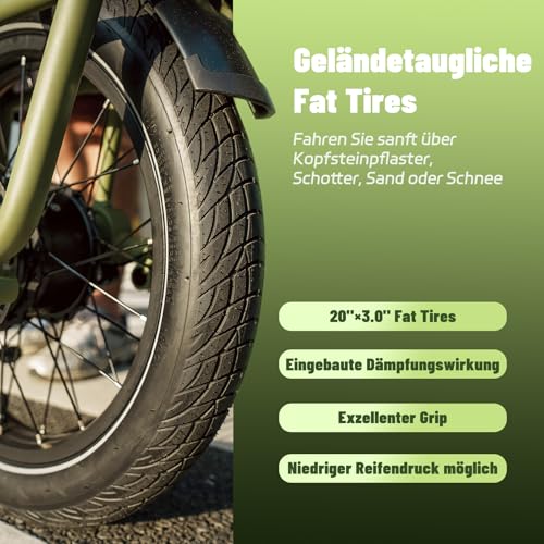 Ein besonderes Highlight sind die doppelten Akkus, die eine Reichweite von 100 bis 140 Kilometern ermöglichen. Das bedeutet für dich: weniger Sorgen um den Ladestand und mehr Zeit für entspannte Ausflüge. Der 250W Hinterradnabenmotor mit Drehmomentsensor sorgt für eine sanfte und intuitive Tretunterstützung, sodass du auch mit schwerer Last mühelos vorankommst. Dank des doppelten Federungssystems und der breiten 20 x 3.0 Zoll-Fat-Reifen genießt du auch auf unebenen Straßen ein komfortables Fahrgefühl. Die hydraulischen Scheibenbremsen garantieren dabei jederzeit sicheres und präzises Bremsen.