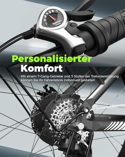 - Das E-Bike verfügt über eine 7-Gang-Schaltung.