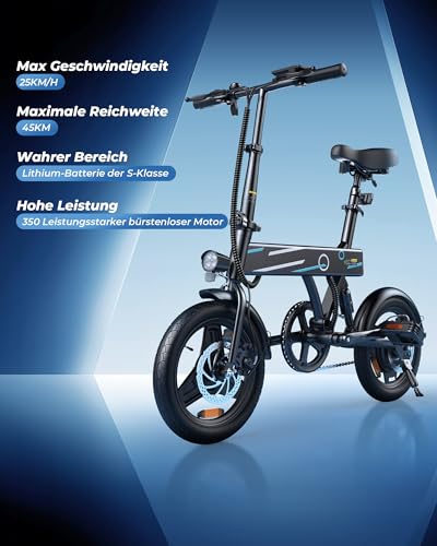 Fragen und Antworten zu Finbike Klapprad E-Bike 14 Zoll, 250W Hochleistungsmotor, 7.8Ah Akku, 3h Schnellladung, 45km Reichweite, Elektro klapprad für 3 Fahrradmodi, Foldable Electric Bike für Erwachsene