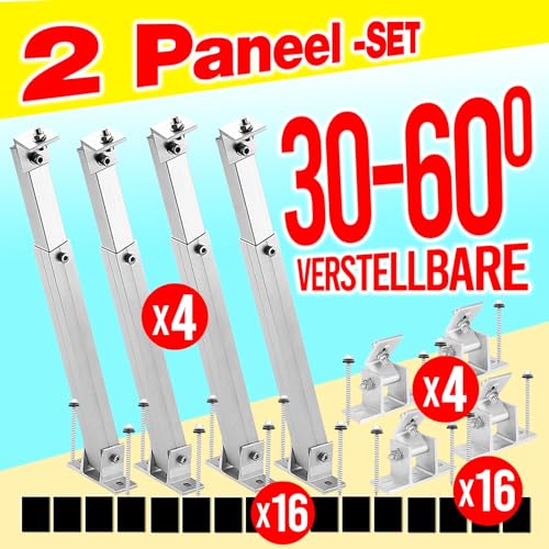 Fragen und Antworten zu Firend Aufständerung Solarmodul Halterung Balkonkraftwerk Flachdach PV VERSTELB 15-60° (2 Paneele SET 30°-60°)