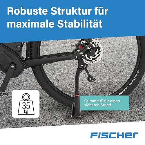 Produktbeschreibung: FISCHER Fahrradständer, 24-29 Zoll, höhenverstellbar, für alle gängigen Fahrräder geeignet, bis 35 kg Traglast, rutschfest, Seitenständer für Mountainbike, E-Bike, Trekking, Rennrad