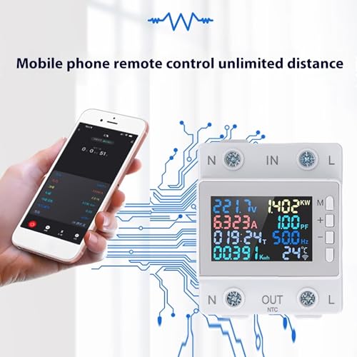 Produktbeschreibung: FTVOGUE Einphasiger Energiezähler, auf DIN-Schiene Montierter Digitaler Leistungsmonitor mit 63 A Stromkapazität, WLAN-fähig, KWS-302WF für die Verfolgung des Stromverbrauchs zu Hause und Im Büro
