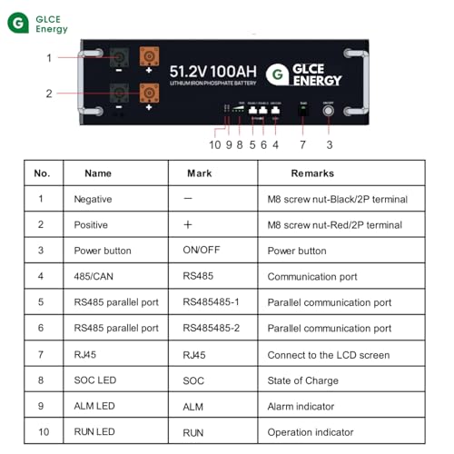 Fragen und Antworten zu GLCE Energy 51.2V 400Ah LiFePO4 Lithium Batterie, Großer LCD-Bildschirm, Eingebautes 100A Smart BMS, 20,48KWh Akku for RV, Solar, Energiespeicher für Zuhause