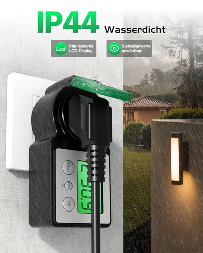 Der GreenSun Stromzähler ist ideal für alle, die ihren Energieverbrauch im Blick behalten und aktiv Stromkosten sparen möchten. Besonders überzeugt die Eignung für den Außenbereich dank der IP44-Zertifizierung sowie die klare Anzeige mit Hintergrundbeleuchtung, die auch bei Dunkelheit eine gute Ablesbarkeit gewährleistet. Die automatische Datenspeicherung ist ein weiteres praktisches Feature, das den GreenSun Stromzähler von vielen anderen Modellen abhebt. Achte bei der Nutzung darauf, dass du den Stromzähler vor extremen Witterungseinflüssen schützt, um seine Lebensdauer zu verlängern.