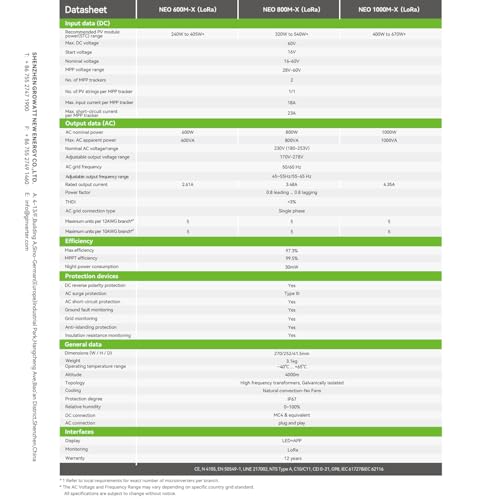 Produktbeschreibung: Growatt Wechselrichter NEO1000M-X (RF) EU LoRa 1000 Watt