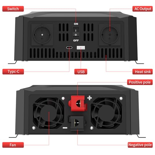 Der GZUNKNG Dual Voltage Wechselrichter bietet dir die Möglichkeit, eine kleine, netzunabhängige Solaranlage zu Hause zu betreiben und so unabhängiger von externen Stromquellen zu werden. Das intelligente Identifizierungssystem für 12V- und 24V-Batterien macht ihn besonders flexibel. Die reine Sinuswelle sorgt dafür, dass du auch empfindliche Geräte problemlos anschließen und betreiben kannst. Die integrierten Schutzmechanismen gewährleisten einen sicheren und zuverlässigen Betrieb.