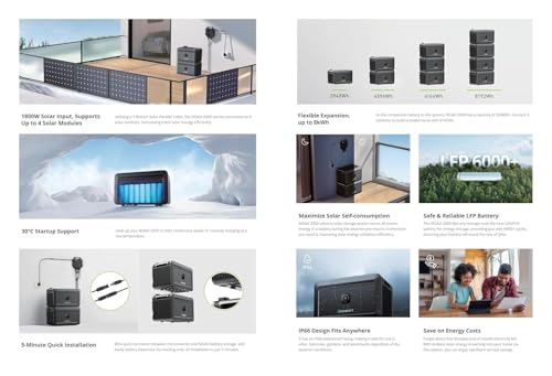Ein herausragendes Merkmal ist die flexible Erweiterbarkeit. Der NOAH 2000 Balkon Solar Speicher kann bis zu 8 kWh Energie speichern und durch die Verbindung von bis zu vier Batterien eine Gesamtkapazität von 8192 Wh erreichen. Jedes Modul bietet dabei 2048W Akkukapazität. Dies ermöglicht es Dir, die Speicherkapazität genau an Deinen Energiebedarf anzupassen und so eine optimale Nutzung der erzeugten Solarenergie zu gewährleisten. Die einfache Installation und die Echtzeit-Überwachung über die ShinePhone-App erleichtern Dir die Handhabung und Kontrolle Deines Energieverbrauchs.