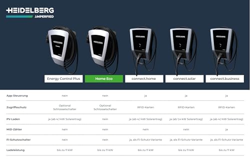 Produktbeschreibung: HEIDELBERG Amperfied Wallbox 11 kW. 5 m Ladekabel. Bis zu 5 Jahre Garantie. Wallbox Made in Germany. Ladestation Home Eco für E-Autos