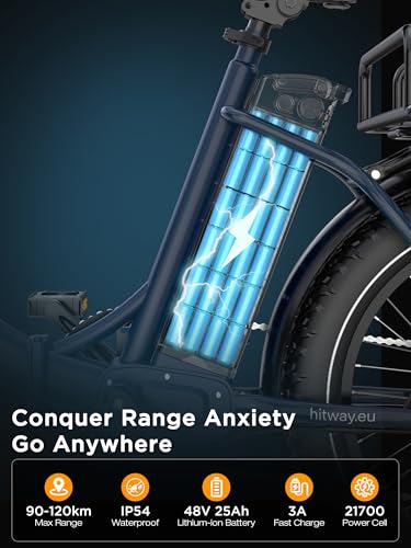 Fragen und Antworten zu HITWAY BK6S Plus E-Bike mit 48V 25Ah Akku und 90-200km Reichweite, 20 Zoll Fat Tire City-Elektrofahrrad mit Doppeltem Gepäckkorb, 250W Motor 25km/h, 7-Gang Schaltung