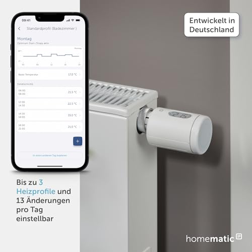 - Bis zu 33 % Heizkosten sparen in Verbindung mit Fenster- und Türkontakten und drei individuell einstellbaren Heizprofilen.