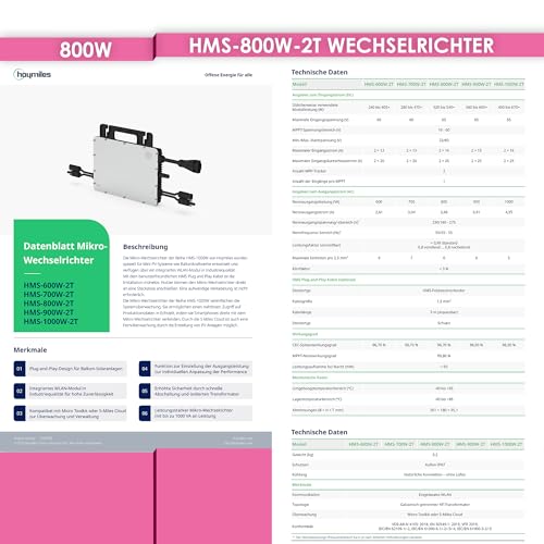 Fazit zu Hoymiles HMS-800W-2T Mikro-Wechselrichter mit integrierter WiFi DTU | inkl. 5m HMS Field Connector Kabel | bis zu 2 PV-Module | 800 Watt | VDE konform | für Balkonkraftwerke