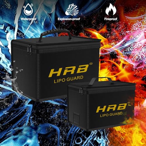 Fragen und Antworten zu HRB Lipo Bag Fireproof Explosion-Proof Safe Lipo Battery Bag Improved Quality Material Battery Safety Box with Large Capacity for Charging and Storing RC Car Batteries