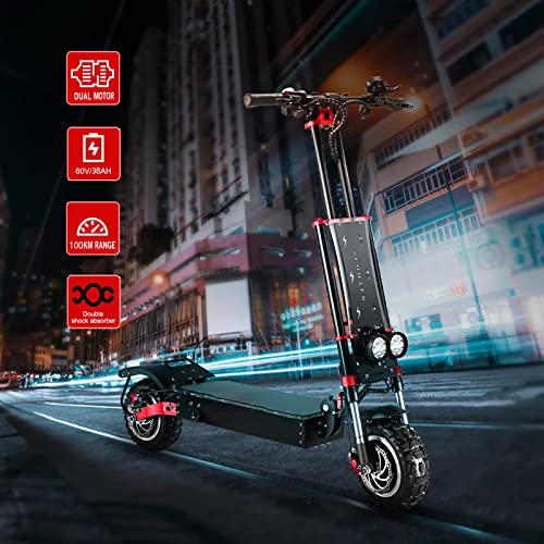 Produktbeschreibung: HWWH Elektro Scooter für Erwachsene E Scooter E Roller Klappbar Doppelmotor Doppelaufhängung 11 Zoll Offroad-Reifen 60 V 45Ah Lithiumbatterie 200kg Last